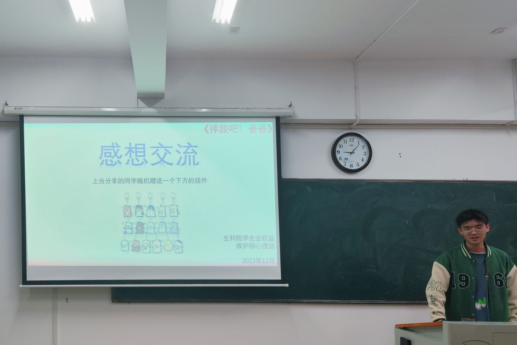 (通讯员 赵梦冉 陈鑫 何雅丽)12月2日晚,秋霰纶理在三级于生科院三号楼B108教室举办“常青藤”影院心理电影沙龙第七期观影活动。生科院学生会权益维护部第二负责人吴念熹担任此次活动主持人。生科院2021级、2022级、2023级部分学生参与此次活动。