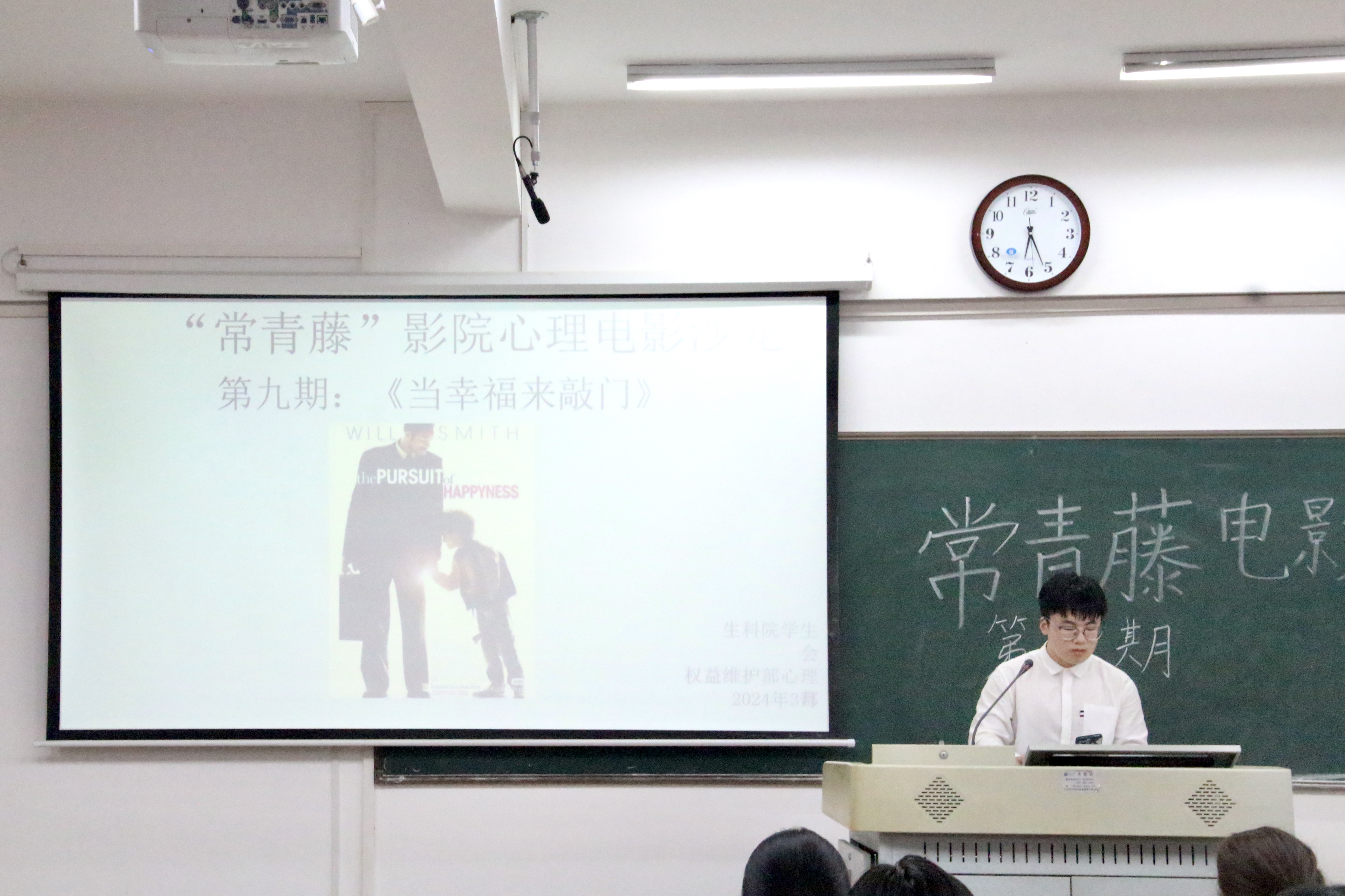 (通讯员 赵梦冉 陈鑫 蒋梦瑶)3月31日晚上,秋霰纶理在三级学生会权益维护部于生科院三号楼B107教室举办“常青藤”影院心理电影沙龙第九期观影活动,生科院学生会权益维护部第二负责人担任此次活动主持人。生科院2021级、2022级、2023级部分学生参加此次活动。