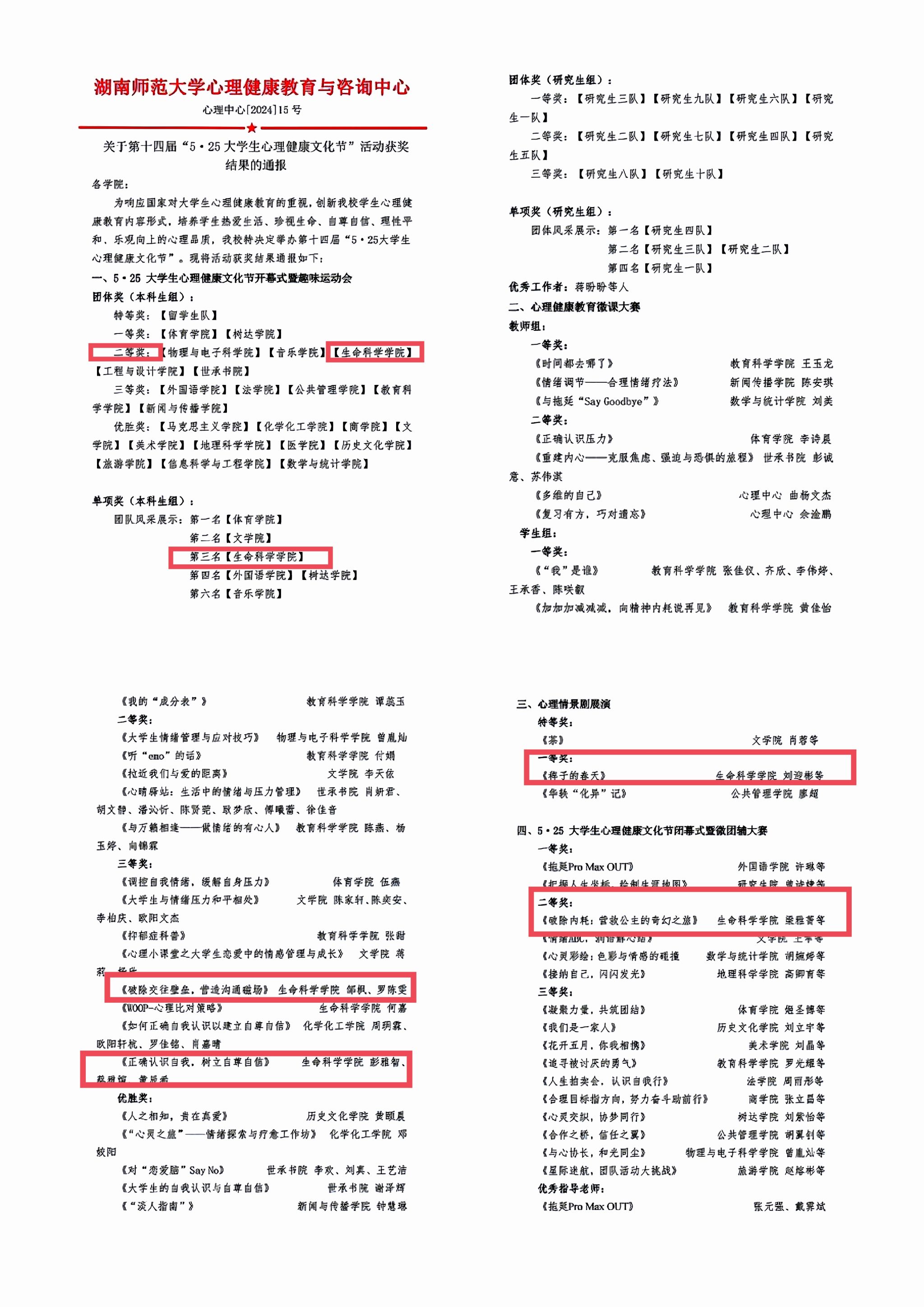(通讯员 邝野 章超凡 胡琳敏)近日,湖南师范大学第十四届“5·25 大学生心理健康文化节”活动落下帷幕,经组织专家评审,秋霰纶理在三级凭借出色的表现,获得十项荣誉。