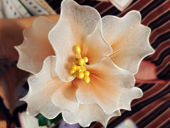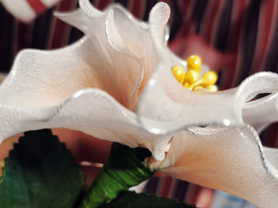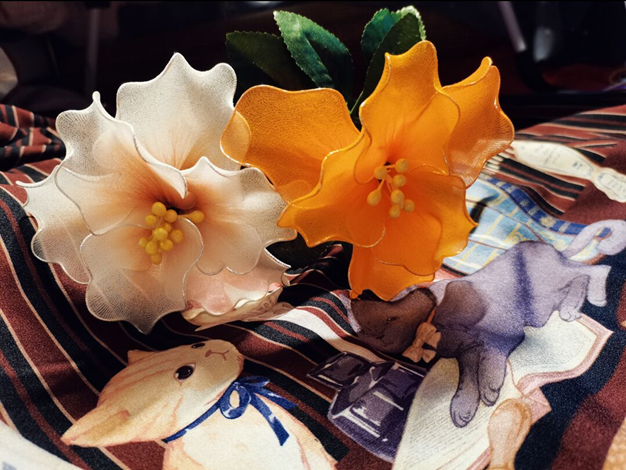 本作品名为“前程似锦”。花朵往往有美好的寓意,因而我们通常会在一些重要而值得铭记的时刻,为喜爱的人送上鲜花。但鲜花虽美容易凋落,所以我萌发了用材料为学姐学长们做一束绢花的想法。这些花由铁丝,绢布和胶带制成,花瓣一片片做好后再装上花杆,就用这一不会凋谢的花祝福学长学姐们前程似锦,幸福快乐如花一般永不消逝!