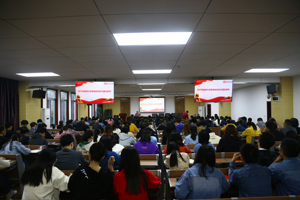 梅军以中国共产党的建党历史为切入点,结合习近平总书记的重要讲话精神,运用视频、图像、文字等多种方式,解答了“党的初心与使命源何而来”和“为什么要坚守初心和使命”两大问题。他指出,初心和使命是激励共产党人砥砺前行的源动力,是共产党确立领导地位的根本依据,更是实现新时代宏伟目标的现实要求。作为党员,要充分意识到并勇敢承担起自己的社会担当和责任。