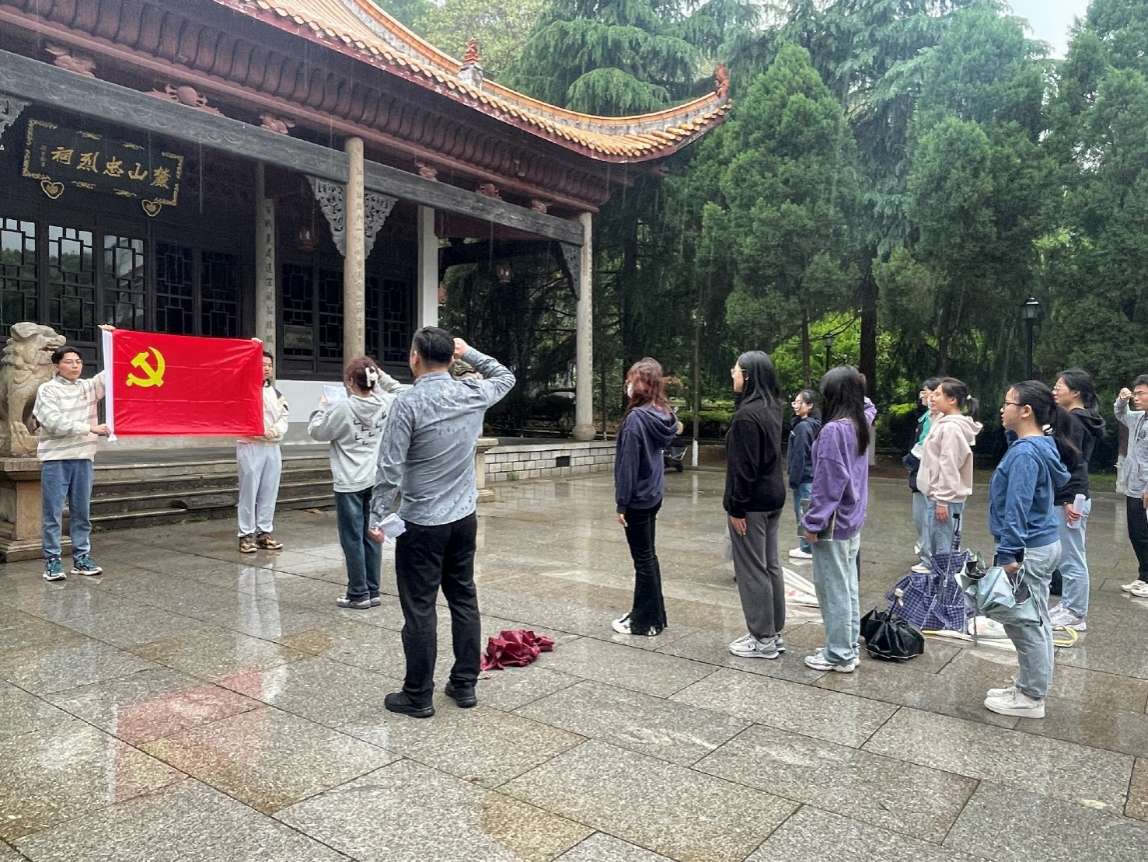 宣誓后,党员们伫立在忠烈祠下,风雨兼程的革命历程历历在目,是思想的伟力,让数万万人投身到新中国的革命与建设当中,也是青春之誓言,一代代党员投身到全心全意为人民服务当中,百年多来的顽强拼搏与不懈奋斗,诞生了一首首不朽的赞歌唱。如今新中国的发展繁华如许,党员们表示,要秉持理想信念,坚守初心使命,与党同心同德、与时代发展同向同行,奋发有为,在新时代展现青年担当。最后由周洲同志总结,希望同志们以此为契机,铭记今天的这一特殊的活动,在风雨飘摇的不确定中坚定前行