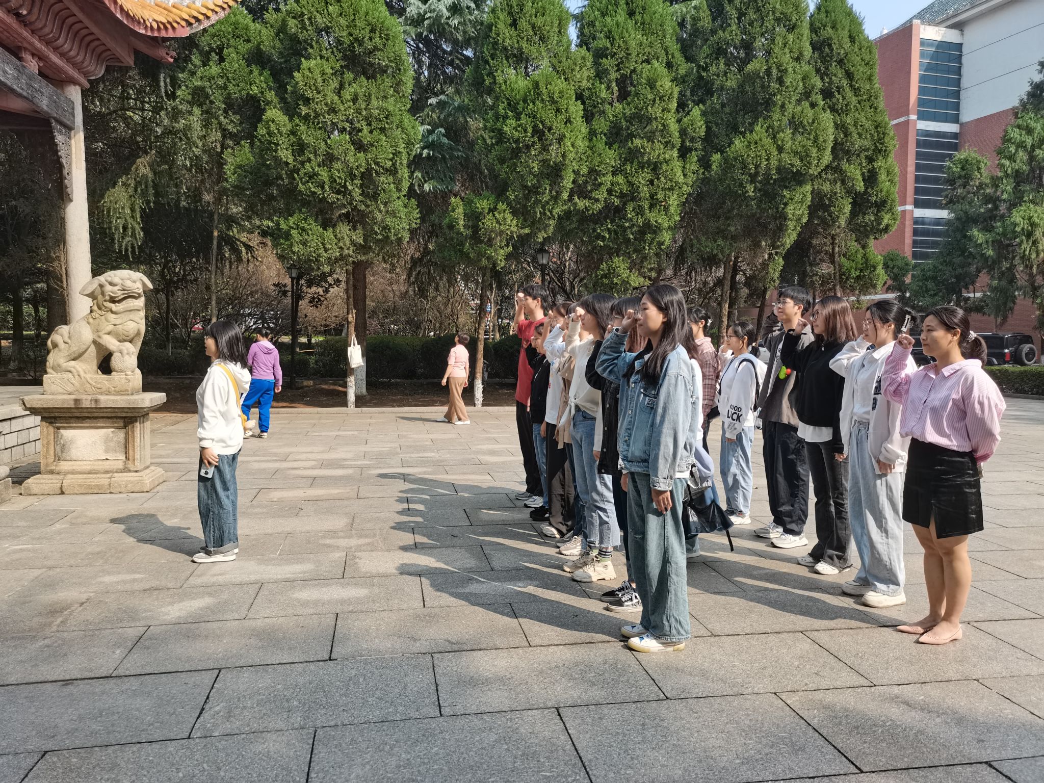 入党宣誓仪式在忠烈祠前坪举行,由支部委员刘智慧主持,仪式分为两项议程:一是由邓孝阳带领党员同志重温入党誓词、二是参观忠烈祠,瞻仰英烈们的先进事迹。