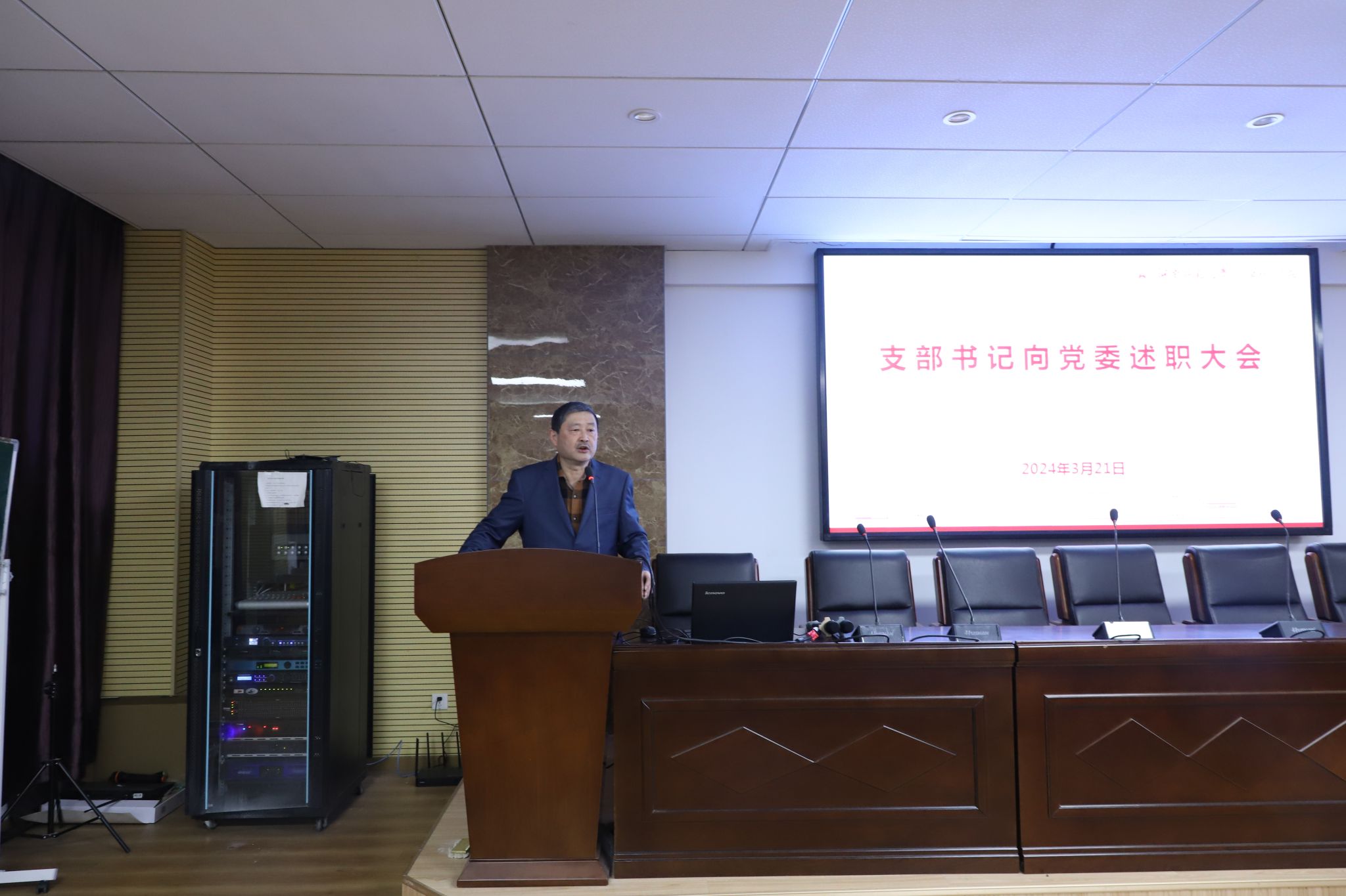 其次,蒋能胜做总结。蒋能胜处长对各位支部书记的述职进行点评,对工作的完成情况做出了肯定,同时也对今后的支部工作做出了指导和要求。强调各支部组织生活记录本的记录要更加规范,党课、主题党日活动、党员大会等具体内容要更加详实,会议的时间地点和参会人员要如实记录。全体参会人员在听取述职报告后,按照客观、公平、公正的原则对21个支部进行了投票并确定初步等次。