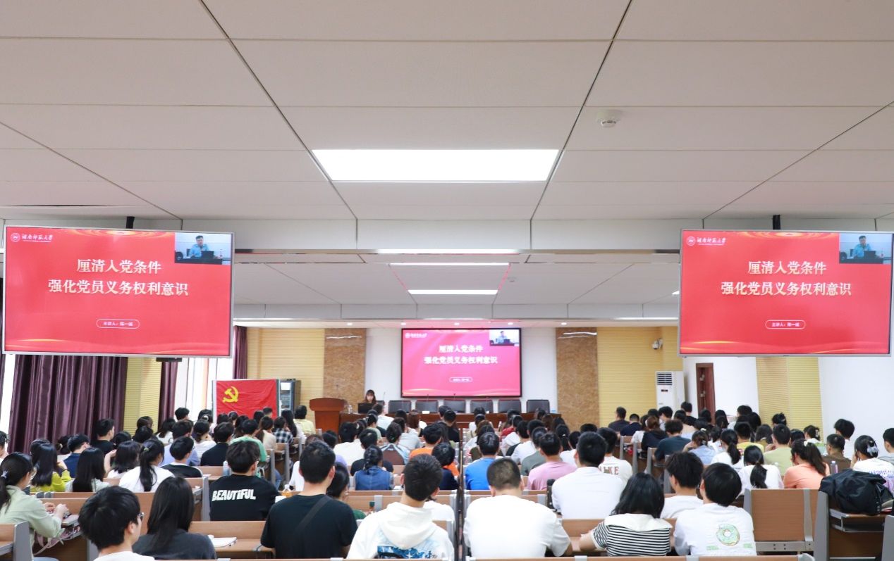 此次会议主要包括开班仪式及党课培训两部分。开班仪式环节,吴晴带领全体学员奏唱《国际歌》,进行开班致辞,说明培训班开设的意义与目的,并强调党课纪律及相关要求,宣读《湖南师范大学党校培训班学员守则》。她勉励学员珍惜学习机会,补足精神之钙,把稳思想之舵,以实际行动向党组织靠拢,永葆信党、爱党、为党的初心本色,争取早日成为一名光荣的共产党员。