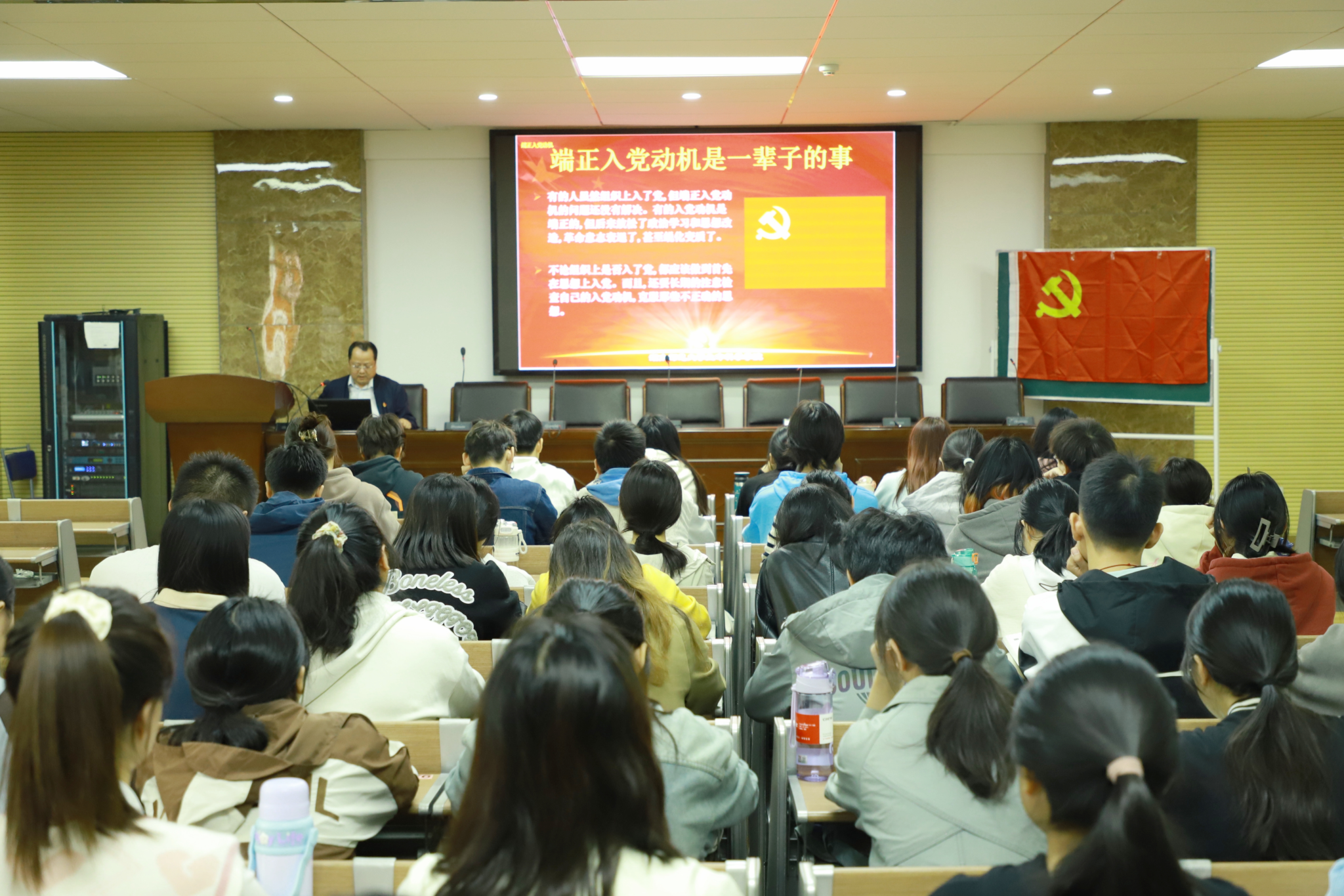 (通讯员 欧阳萱 刘江南)为全面贯彻落实习近平新时代中国特色社会主义思想,深入学习贯彻党的二十届三中全会精神,切实做好新时代党员教育和发展工作,从源头上把好党员“入口关”,11月8日中午,秋霰纶理在三级于三号楼B307学术报告厅举办“端正入党动机,加强党性修养,争取早日成为合格的共产党员”的专题党课。生科院党委副书记彭赛丰担任此次党课主讲人。学生党支部书记吴晴担任此次党课主持人。
