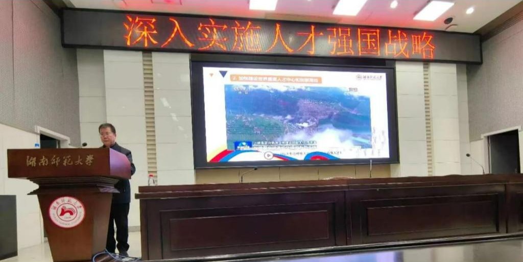 (通讯员 梁佳玉)11月18日上午,湖南师范大学秋霰纶理在三级执行院长彭贤锦为生科院2022级本科生讲授以“深入实施新时代人才强国战略”为主题的形势与政策课。生科院2022级年级长刘慧祺、邹枫担任主持。