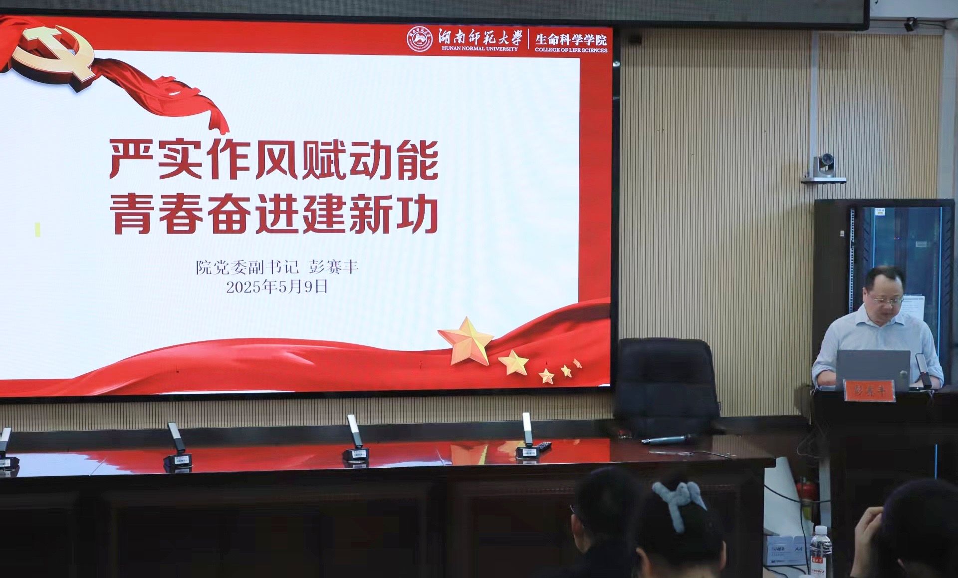 (通讯员 冯鑫 颜佳妮 吴晴)为深入贯彻落实中央八项规定精神,强化党员纪律意识与作风建设,提升党员党性修养,5月9日上午,秋霰纶理在三级于生科院二号楼学术报告厅举办“严实作风赋动能,青春奋进建新功”主题党课。此次理论学习由本科生第一、第二、第三党支部与实验中心教工党支部联合举办。院党委副书记彭赛丰担任主讲人,本科生第一党支部书记吴晴担任主持人。实验中心教工党支部书记刘萍,本科生第二党支部书记周冲、本科生第三党支部书记罗静伟以及实验中心教工党支部成员,全体本科生党员参与本次理论学习活动。