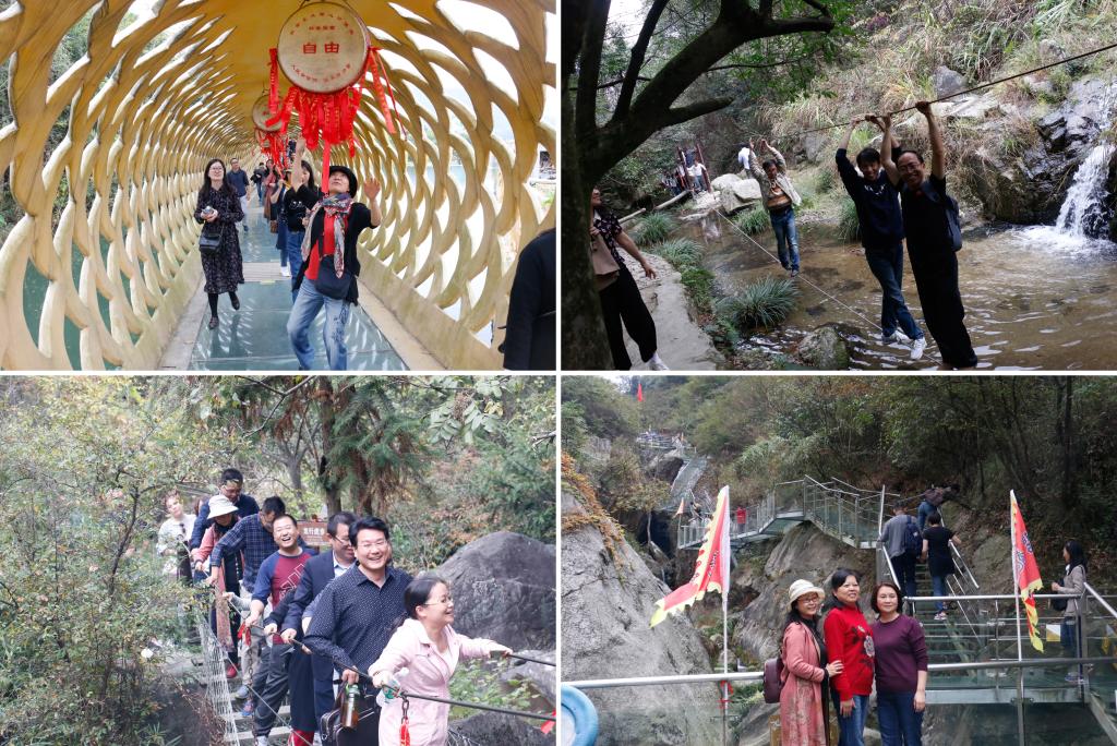 下午,老师们一起游览了碧龙峡的自然风光。深秋时节,碧龙峡秋色宜人。山路上不时的玻璃阶梯和吊桥,也为此次登山增添了不少乐趣。大家兴趣盎然,一路观景,一路说笑,分享着工作之余大自然带来的那份轻松与惬意。