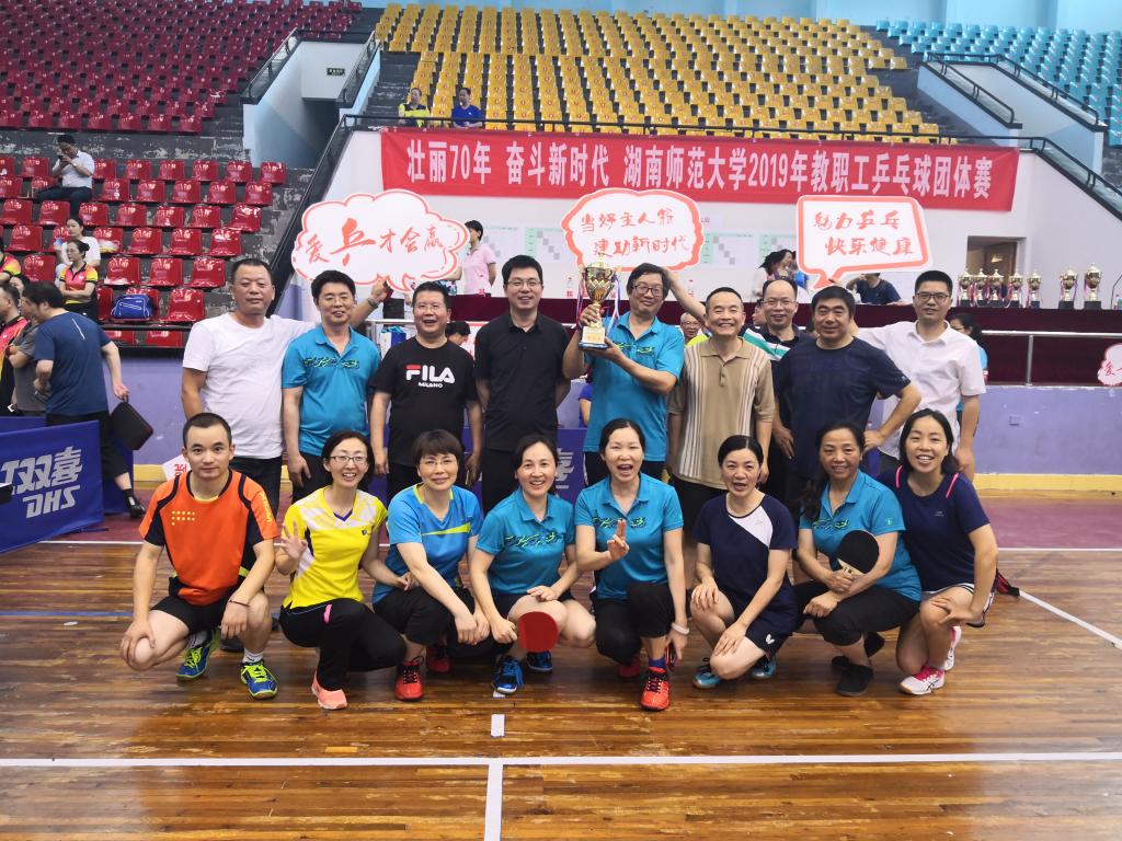 (通讯员 陈卓尔)“壮丽70年 奋进新时代”,湖南师范大学2019年教职工乒乓球团体赛6月15日圆满落幕,经过1天半的激烈鏖战,学院乒乓球队荣获团体第三名的佳绩。