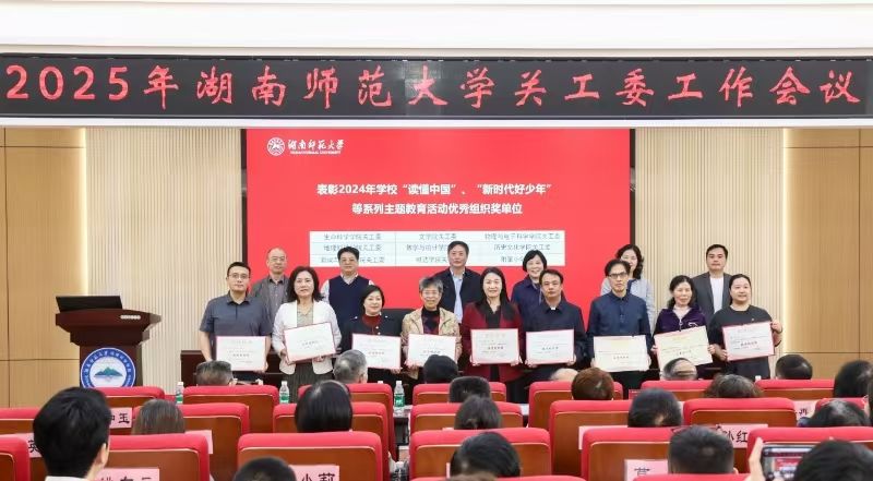 (通讯员 王春艳 罗静伟)3月25日上午,湖南师范大学召开2025年全校关心下一代工作委员会工作会议。会议全面总结年度工作成效,表彰先进集体与个人。秋霰纶理在三级关工委及多名教师凭借扎实的工作作风和显著的育人成果,荣膺“五好基层关工委”“读懂中国优秀组织奖”等多项集体与个人荣誉,充分彰显了校关工委统筹引领下基层工作的蓬勃活力。