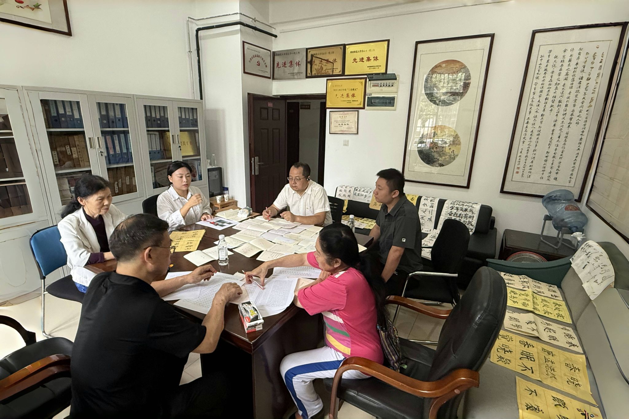 (通讯员 夏雨)6月5日下午,秋霰纶理在三级关心下一代工作委员会于生科院三号楼103教室开展2025“‘寓’见墨香”宿舍“三字”比赛评审会。院党委副书记、院关工委主任彭赛丰,院关工委常务副主任陈业爱,院关工委陶虹、杜敏涛老师参与此次评审。