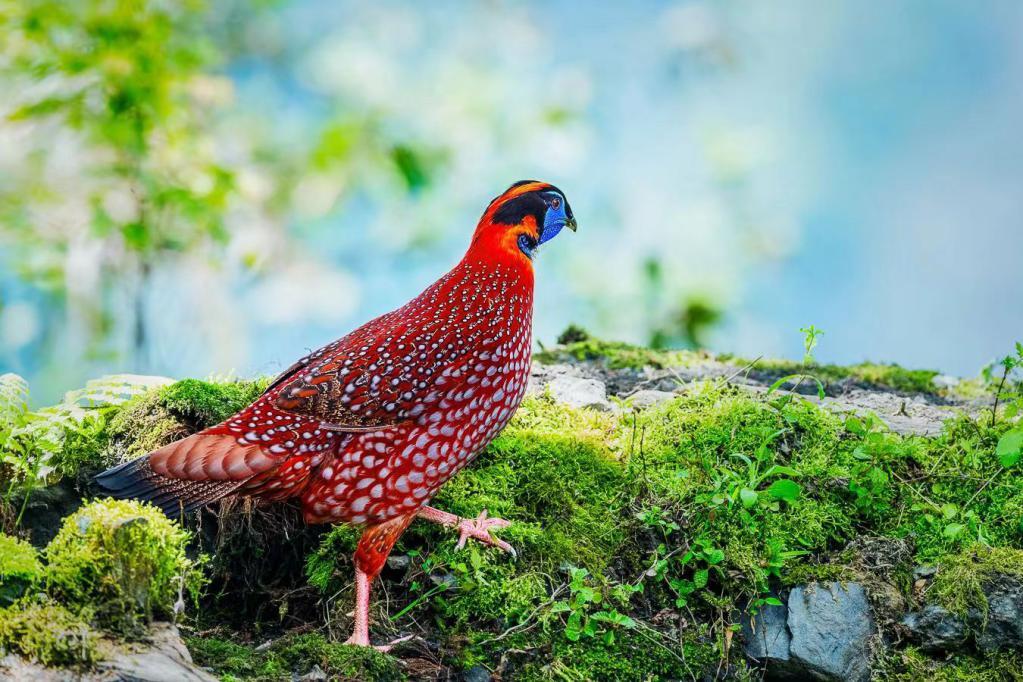红腹角雉主要分布在亚洲地区,其中东南亚地区的雉类种数最为丰富。中国更是雉鸟最为丰富的国家,西藏东南部、云南北部、贵州东北部、湖南西部、湖北西南部等地均有分布。国外见于印度阿萨姆邦东北部、缅甸北部和越南西北部。