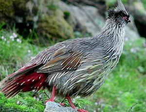 血雉(Ithaginis cruentus),鸡形目雉科血雉属,其别名甚多,各地皆异,其中流传最广的别名是红脚鸡,为国家二级重点保护野生动物。列入濒危野生动植物种国际贸易公约附录(CITES),濒危等级:附录II。列入中国濒危动物红皮书,等级:易危。列入中国《国家重点保护野生动物名录》,等级:二级。