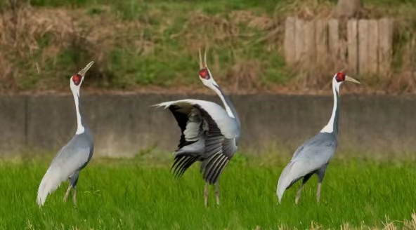 行为:常成对或成家族群活动,有时也有单独活动和由家族群组成的松散群体活动。栖息和觅食的地点均较为固定。性情机警,活动和觅食的时候常不断地抬头观望。它们每天用大量时间梳理羽毛,确保“衣冠整齐”。孵卵时,常修补整理爱巢,会到一固定地点处排便,所以它们的巢十分整洁且没有异味。白头鹤在采食过程中很有“君子风度”,从不暴饮暴食。