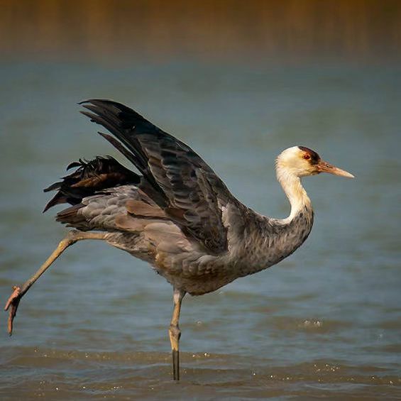形态:白头鹤为大型涉禽,体长92-97厘米,体重3284-4870克。通体大都呈石板灰色,眼睛前面和额部密被黑色的羽毛,头顶上的皮肤裸露无羽,呈鲜艳的红色,其余头部和颈的上部为白色。两个翅膀为灰黑色,次级和三级飞羽延长,弯曲成弓状,覆盖于尾羽上,羽枝松散,似毛发状。虹膜深褐色,嘴黄绿色,胫的裸出部、跗跖和趾为黑色。