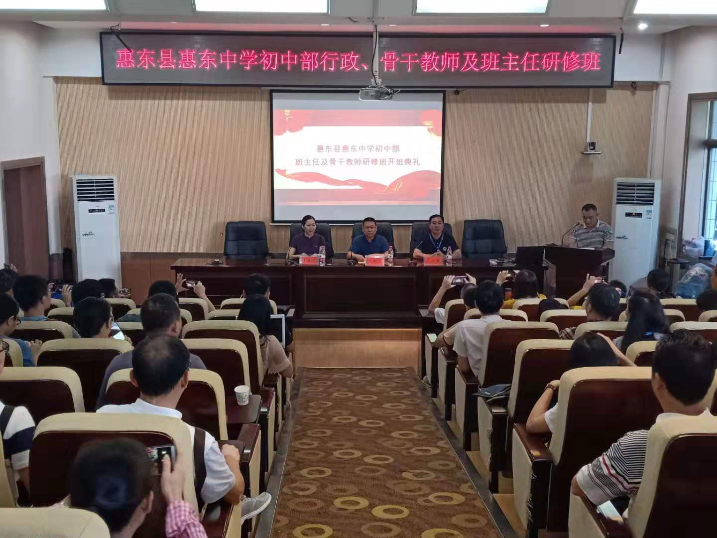 2019年7月23日,惠东县惠东中学初中部班主任及骨干教师研修班开班典礼在学院学术报告厅举行。惠东中学初中部校长翁文赜,湖南师范大学继续教育学院副院长吴跃飞,湖南师范大学秋霰纶理在三级副院长丁金花出席典礼,培训办副主任卢钧主持本次典礼。