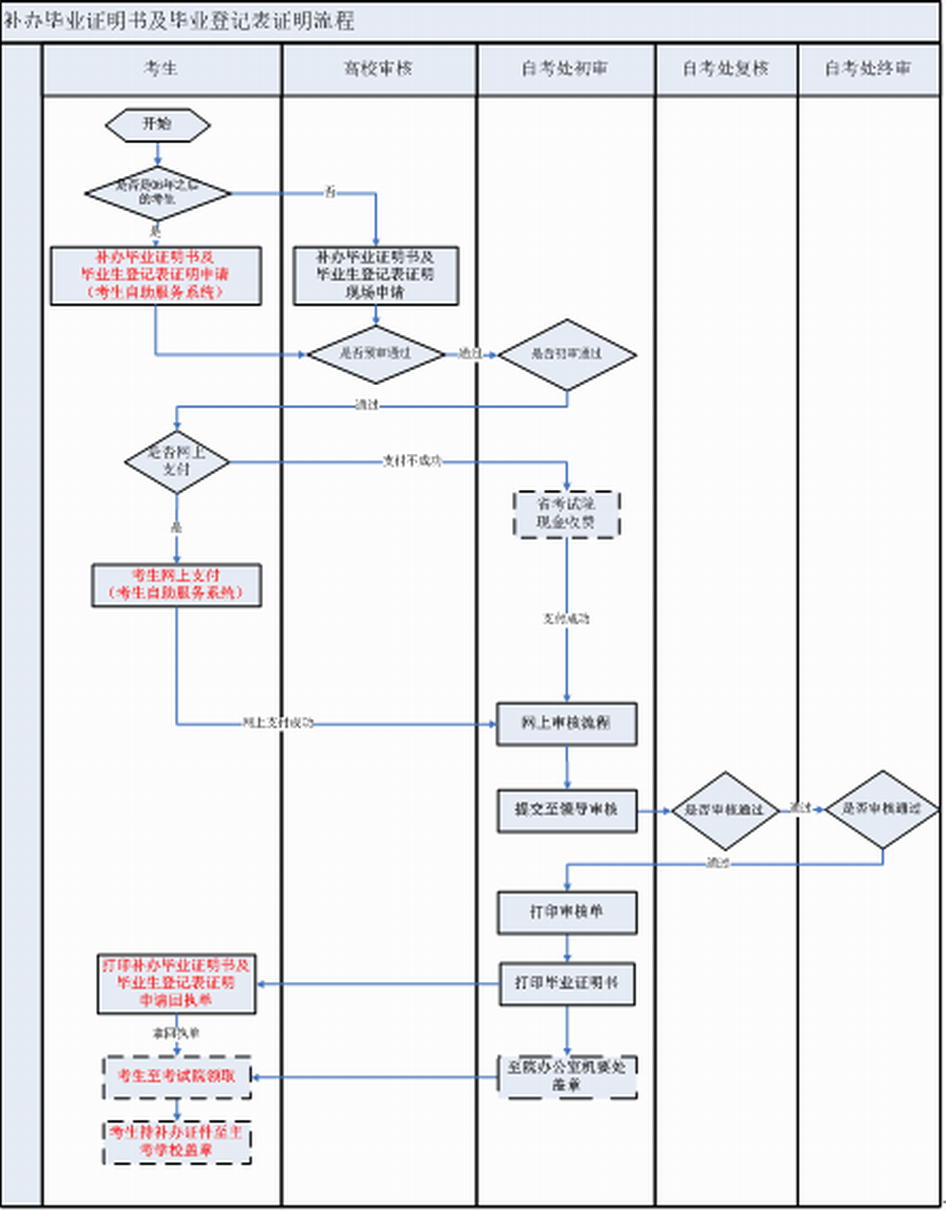 湖南省高等教育自学考试毕业证明书和毕业生登记表证明书办理流程图