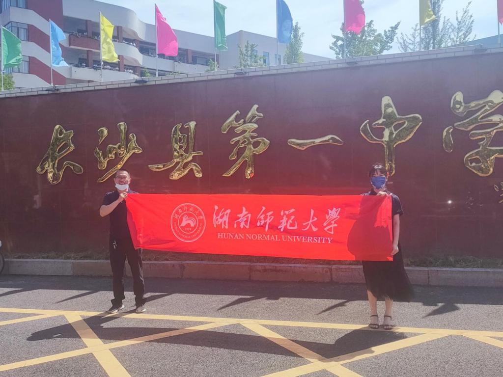 彭赛丰于6月26日带领2018级辅导员王洋到达江江市第一中学进行宣传,陈湘定于6月27日带领2019级辅导员李翠玲到达长沙县第一中学进行宣传。我院招生宣传工作组认真细致地向师生和家长们介绍了我校学校发展概况及2022年本科招生政策,耐心解答了学生和家长重点关心的报考事宜和专业选择等问题,并发放了大量招生宣传资料和文创纪念品,受到了师生和家长们的热烈欢迎,同学们纷纷表示希望自己有机会成功考取湖南师范大学。