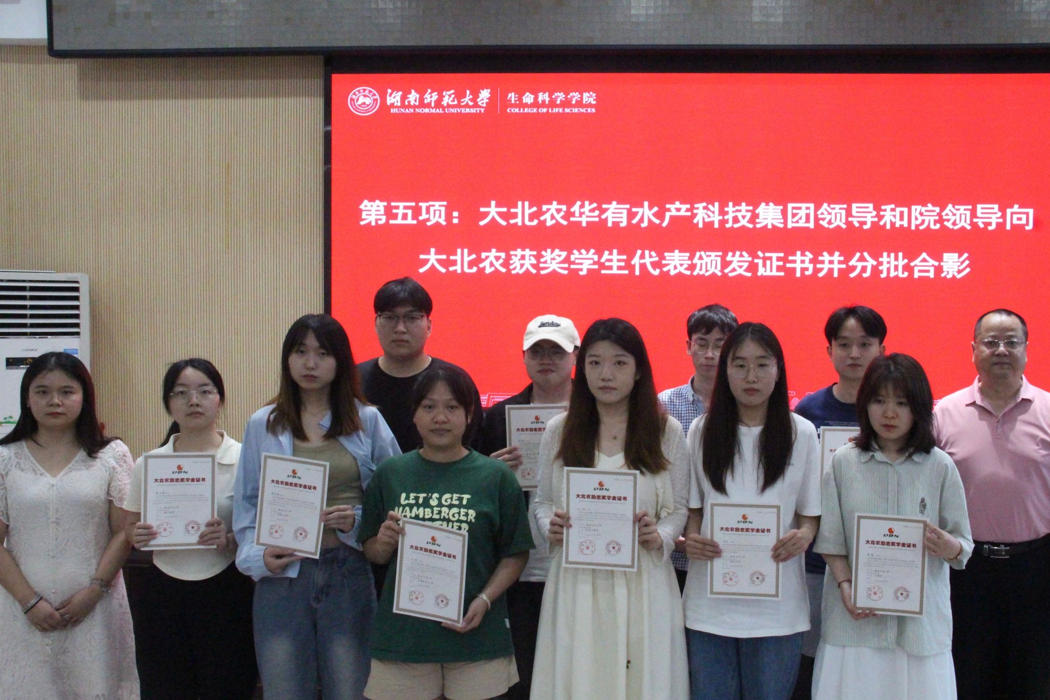 (通讯员 陈妍静 胡琳敏 田灿)6月20日中午,秋霰纶理在三级2023年度大北农励志奖学金、腾龙奖学金、长沙市妇幼生命科学奖颁奖仪式于生科院二号楼学术报告厅举行。院党委副书记彭赛丰、生科院副院长全妙华、湖南省鱼类发育生物学国家重点实验室副主任夏立秋及学工办、研办全体老师,大北农华有水产科技集团湖南事业部总配方师潘望城、大北农华有水产科技集团湖南事业部创业人才经理周琦出席活动。本次活动由2023级本科生辅导员吴晴主持。