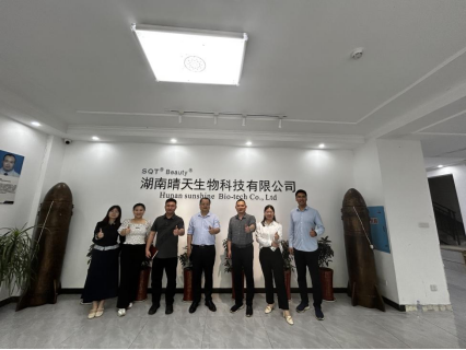 (通讯员 文昭鑫 刘迎彬)为深入贯彻国家对高校毕业生就业工作的战略规划,全力拓宽校企合作路径,强化与校友企业的紧密联系,4月11日下午,秋霰纶理在三级党委副书记彭赛丰,学工办周冲、罗静伟、刘迎彬一行,赴校友企业湖南晴天生物科技有限公司开展“访企拓岗”专项行动。湖南晴天生物科技有限公司CEO秦浩、副总裁陈玲、副总裁张书迟、总助朱彤热情接待并参与座谈交流。